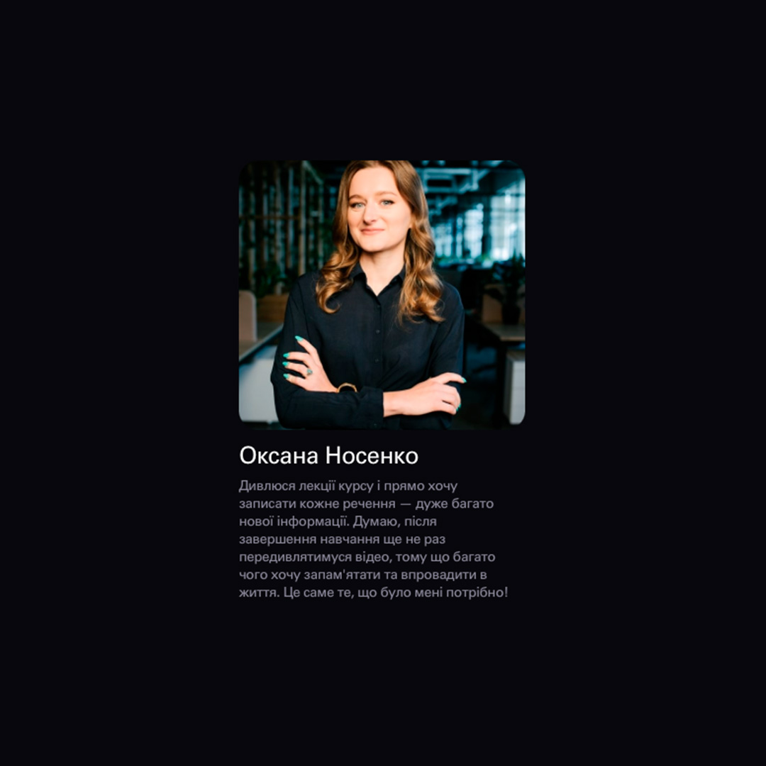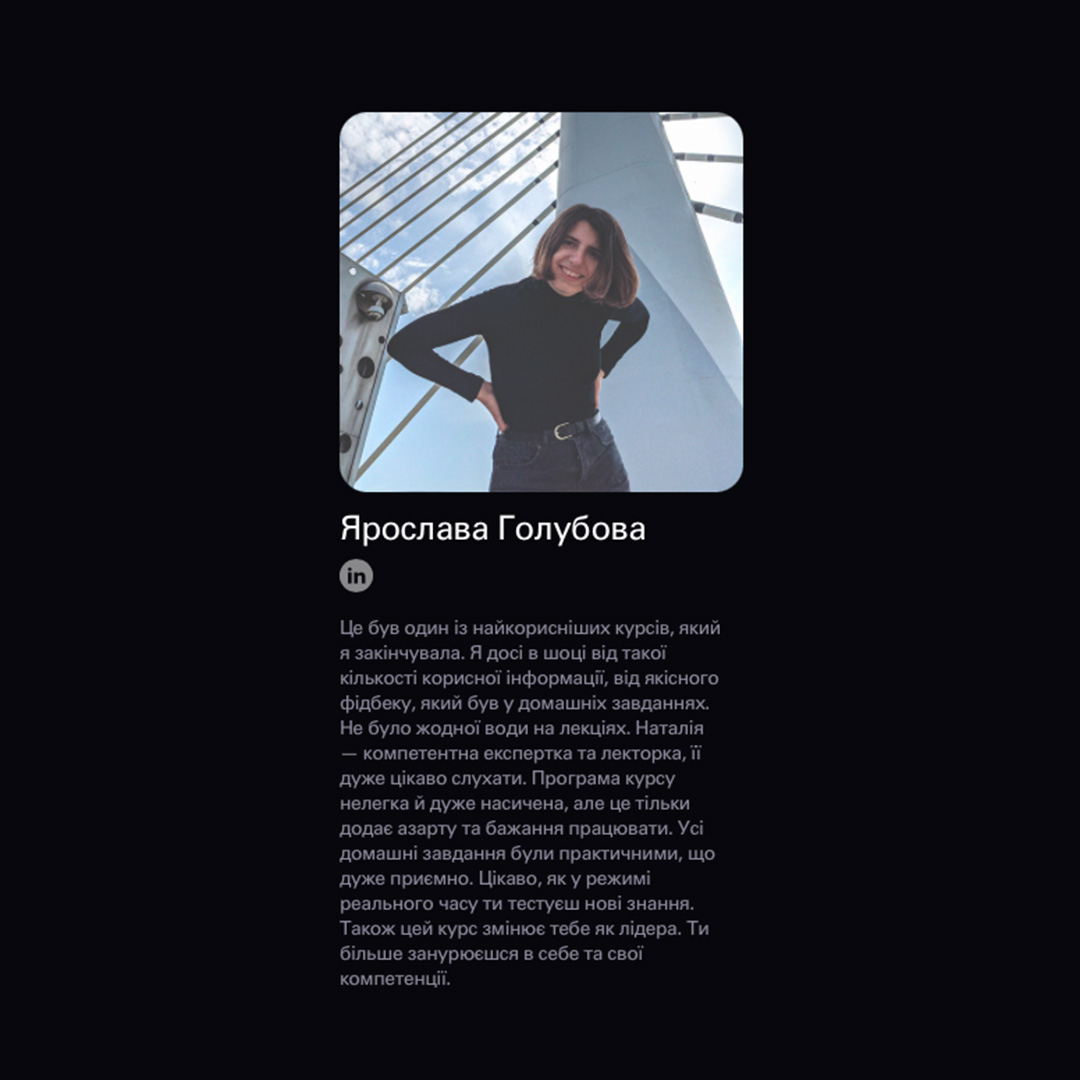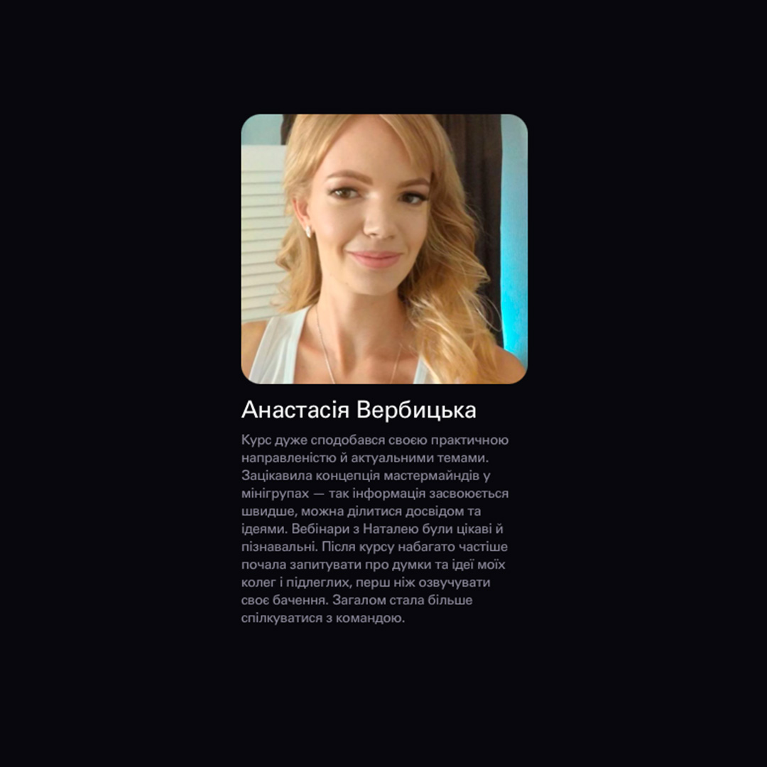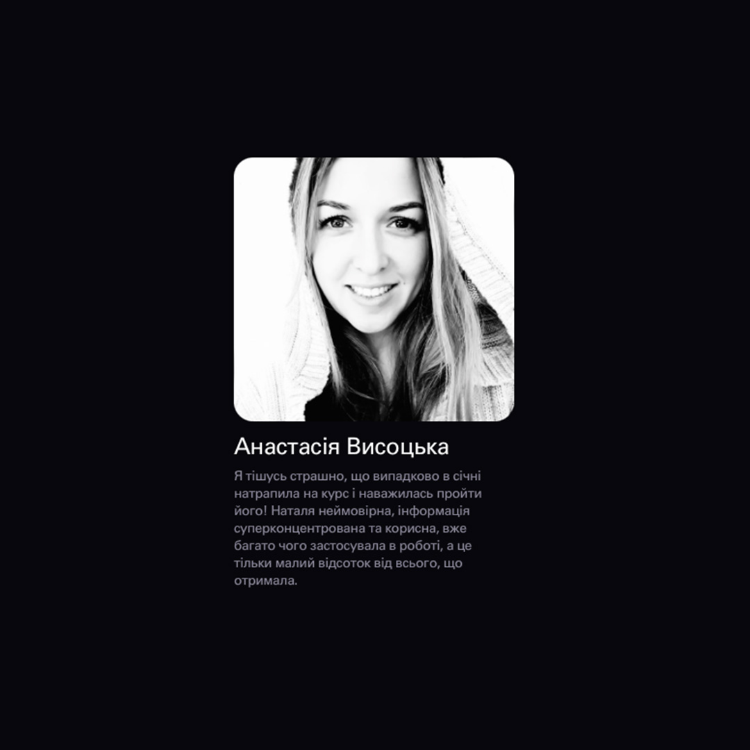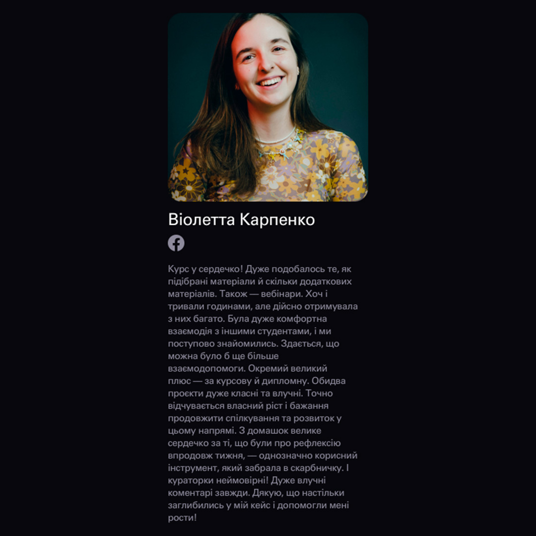 10+ years of teaching and mentoring at Projector online institute, Kyiv Academy of Media Arts, Baggage school of marketing communications, ADC*UA School.